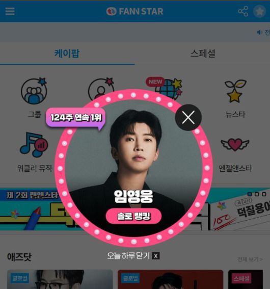지난 19일 가수 임영웅이 '팬앤스타' 솔로랭킹 1위를 차지했다. /팬앤스타 |