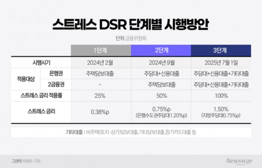 금융당국은 2024년 2월 1단계(은행권 주담대에 0.38%p 가산)를 시작으로 같은 해 9월 2단계(수도권 1.2%p·비수도권 0.75%p 가산)를 도입한 데 이어 올해 7월 3단계로 마무리 단계에 들어간다는 방침이다 이를 통해 가계부채 증가세 억제와 금융권 건전성 제고라는 두 마리 토끼를 잡겠다는 목표다.
