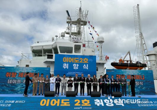 한국해양과학기술원(KIOST·원장 이희승)은 20일 경남 거제 KIOST 남해연구소에서 이어도2호 취항식을 열고 우리나라 바다 주권을 지킬 차세대 해양조사선의 출항을 알렸다.