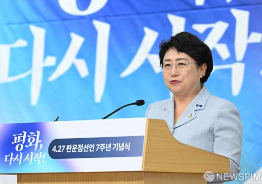 [서울=뉴스핌] 윤창빈 기자 = 김선민 조국혁신당 대표 권한대행이 25일 서울 여의도 국회도서관에서 열린 4.27 판문점선언 7주년 기념식에 참석해 축사를 하고 있다. 2025.04.25 pangbin@newspim.com |