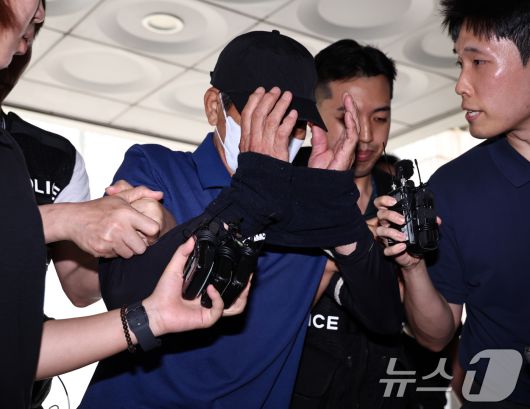숭례문 지하보도에서 60대 환경미화원을 살해한 혐의를 받는 리 모 씨가 4일 오후 서울 서초구 서울중앙지방법원에서 열린 구속 전 피의자 심문(영장실질심사)에 출석하고 있다. 2024.8.4/뉴스1 ⓒ News1 구윤성 기자 |