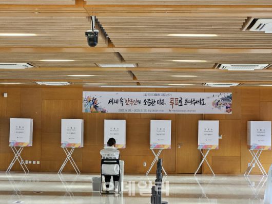 기표소에 들어가 투표하면 된다. 투표용지엔 △1번 더불어민주당 이재명 △2번 국민의힘 김문수 △4번 개혁신당 이준석 △5번 민주노동당 권영국 △6번 자유통일당 구주와 △7번 무소속 황교안 △8번 무소속 송진호 등 7명의 기호와 소속, 이름이 적혔다. 기호 3번은 표기되지 않았다.