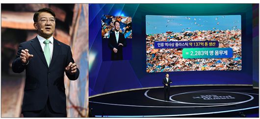 ▲ <이상엽 KAIST 생명화학공학과 특훈교수는 인류 역사상 플라스틱은 약 137억 톤이 생산되었고 사람 몸무게를 60kg으로 산정한다면 총 2천283억 명의 몸무게와 맞먹는 양이라고 설명했습니다>