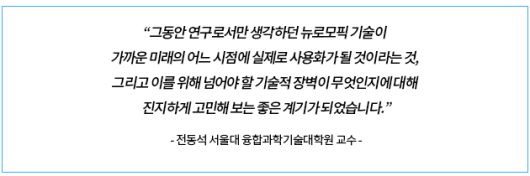 영화에서처럼 뇌 내부나 신경계와 직접 연결하게 되면 이전에는 가능하지 않았던 거의 모든 종류의 감각 및 운동 신경계 기능 이상을 구체적인 장애의 부위와 원인에 구애받지 않고 해결한다든지 우울증이나 퇴행성 치매와 같은 다양한 정신 질환의 해결도 가능해질 수 있을 것으로 기대한다고 백세범 교수는 강조했습니다.