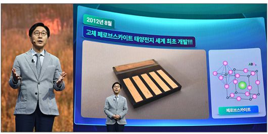 국내에서 최초로 종신석좌교수의 타이틀을 받은 박남규 성균관대 화학공학부 종신석좌교수님이 바로 이 페로브스카이트라는 물질로 2012년 고체 페로브스카이트 태양전지를 세계에서 최초로 개발했습니다.