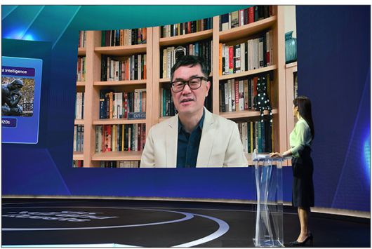 ▲ <'뇌내현실이 현실화되려면' 세션에서 라이브로 연결해 강연 중인 이대열 존스홉킨스대 신경과학과 블룸버그 특훈교수>