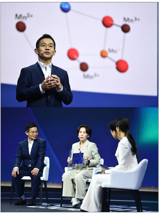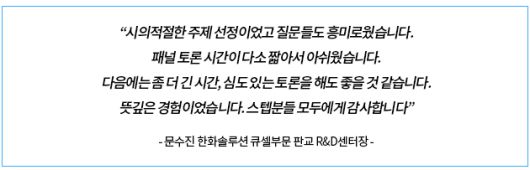 직접 보여주고 있는 문수진 한화솔루션 큐셀부문 판교 R&D센터장(아래)>