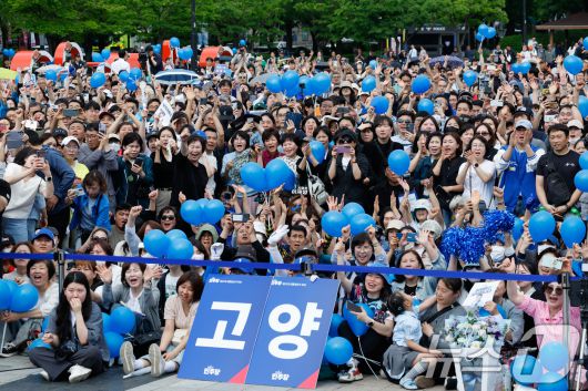 (고양=뉴스1) 안은나 기자 = 이재명 더불어민주당 대통령 후보가 수도권 표심잡기에 나선 20일 오후 경기 고양시 일산문화광장에서 지지를 호소하는 가운데 시민들이 손뼉치고 있다. 2025.5.20/뉴스1coinlocker@news1.krCopyright ⓒ 뉴스1. All rights reserved. 무단 전재 및 재배포, AI학습 이용 금지.