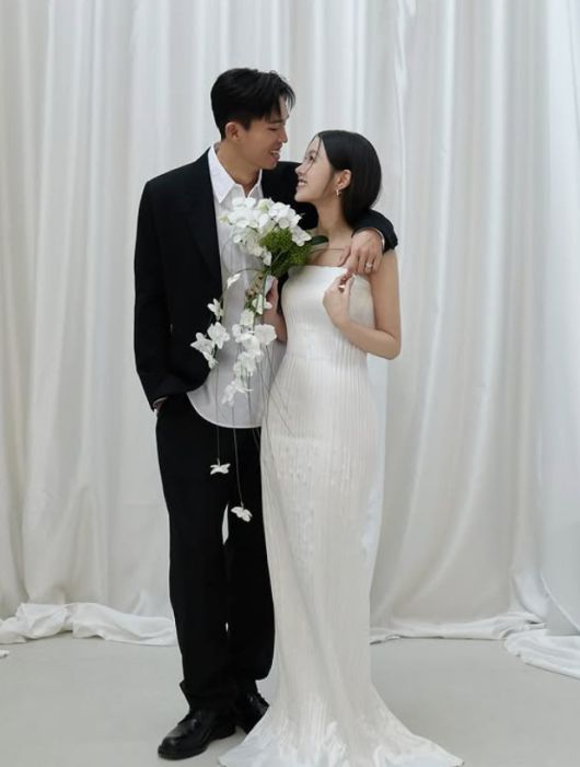 (서울=뉴스1) 안태현 기자축구 국가대표 정우영이 배우 이광기의 딸 이연지 씨와의 웨딩 화보를 공개했다.