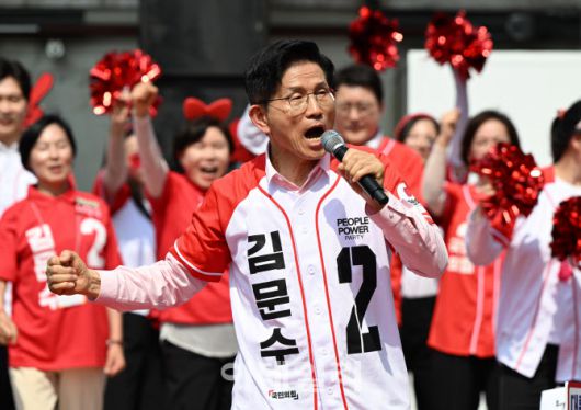 [이데일리 방인권 기자] 김문수 국민의힘 대선후보가 20일 서울 서초구 고속터미널 광장 유세에서 지지를 호소하는 연설을 하고 있다.