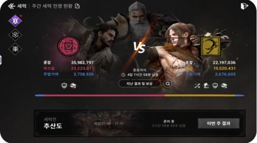 세력전은 단순한 필드 PvP를 넘어 전략적인 플레이를 요구한다. 막사를 파괴하거나 제한 시간 내 더 많은 점수를 획득하는 방식인데, 승리 시 제공되는 보상도 상당하다. 여기에 각 세력의 장을 선출하는 '총세력장 선거'와, 세력 활동에 따라 등급이 매겨지는 시스템까지 더해져, 사회적 경쟁 구조가 잘 짜여 있다는 인상을 준다.