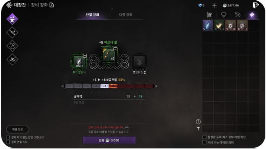 장비 강화는 +5까지는 안전하지만 이후부터는 확률 강화이며, 실패 시 장비가 파괴된다. 정령을 수집하여 능력치를 올리거나, 필경관이라는 도감 시스템을 통해 수집욕구를 자극하기도 한다. 다양한 콘텐츠가 유기적으로 연결되어 있어 할 것은 많은 게임이다.