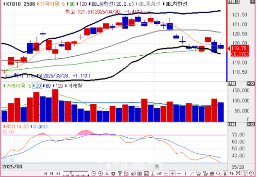 10년 국채선물 가격 일봉 차트(자료=엠피닥터) |