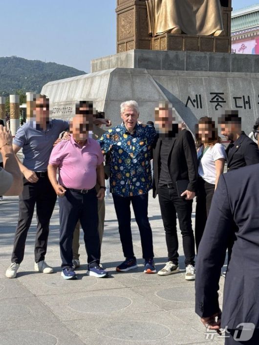 사진에는 클린턴 전 대통령이 서울 광화문광장 세종대왕 동상 앞에서 포즈를 취한 모습, 거리에서 행인들에게 둘러싸인 모습이 포착됐다.