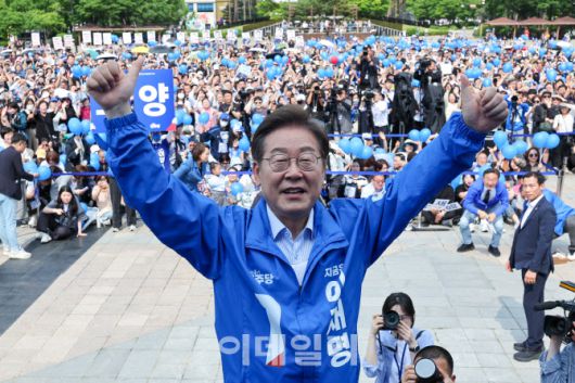 이재명 더불어민주당 대통령 후보가 수도권 표심잡기에 나선 20일 오후 경기 고양시 일산문화광장에서 유세를 마친 뒤 인사하고 있다.(사진=뉴스1) |