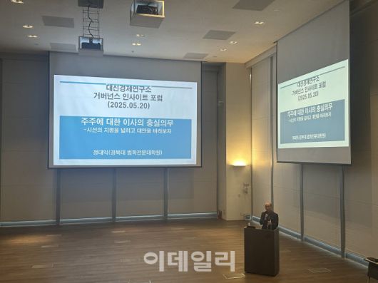 정대익 경북대 교수는 이날 서울 중구 대신파이낸스센터에서 진행된 대신경제연구소 주최 ‘거버넌스 인사이트 포럼’에서 이사의 충실의무 확대 방향의 상법 개정안과 관련해 “이사는 회사의 도구적 역할에 지나지 않는다”며 이같이 밝혔다.