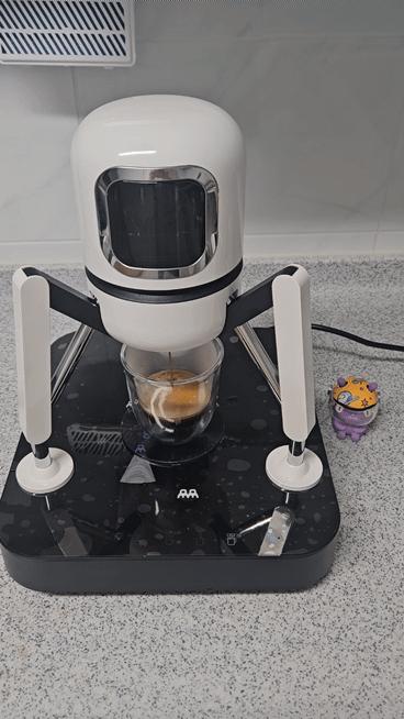 이후 완성된 커피는 우주선 본체의 밑쪽으로 추출된다. 이 때 커피머신을 앱과 연동해 사용할 수 있다는 측면에서 장점이 또 드러났다. 커피 추출 진행 정도를 스마트폰을 통해 퍼센테이지로 확인할 수 있었고, 커피 추출 완료 시점에 맞춰 '커피 추출 완료' 알람도 자동으로 나왔다. 덕분에 커피를 추출하는 과정에서 다른 작업을 하며 시간을 보낼 수 있었다.