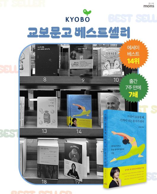 공개된 사진에는 대형 서점의 에세이 부문 베스트셀러 코너가 담겨 있으며, 특히 14위에 김지호의 첫 산문집이 자리하고 있어 눈길을 끈다.