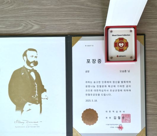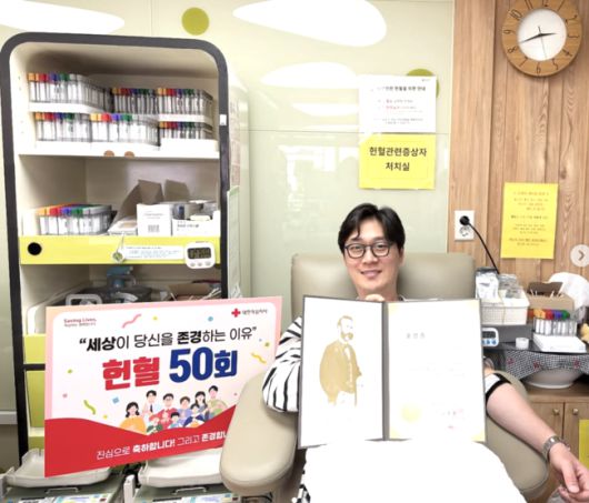 [OSEN=최이정 기자] MBC 오승훈 아나운서가 25년간 꾸준히 이어온 선행의 결실로 ‘헌혈 금장’을 받았다. 헌혈 50회를 채운 이들에게 주어지는 뜻깊은 상장으로, 오 아나운서는 긴 시간 묵묵히 이어온 나눔을 스스로 증명해냈다.