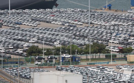 20일 경기 평택시 포승읍 평택항 자동차전용부두에 수출용 차량들이 세워져 있다. 2025.5.20/뉴스1 ⓒ News1 김영운 기자 |