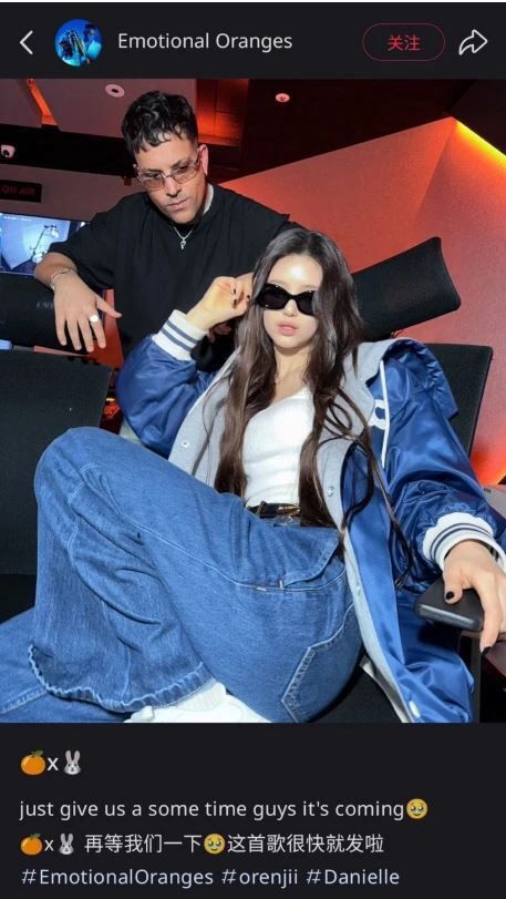 사진과 함께 팀의 상징인 ‘오렌지’와 뉴진스의 이모티콘 ‘토끼’를 함께 올리며 “조금만 기다려주세요. 곧 나옵니다”라는 글을 남겼다.