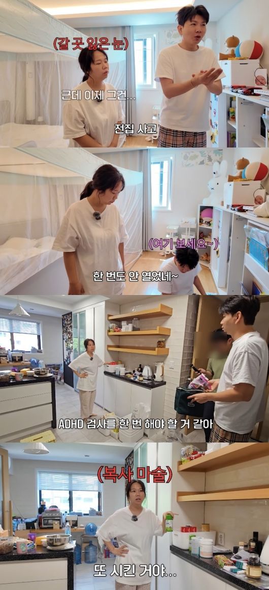 홍현희는 주방으로 향한 후 “저는 근데 확실히 새로운 집 갔을 때는 ADHD 검사를 해야 할 것 같다. 보리굴비 먹고 싶어서 녹차를 샀는데 찾아보지도 않고 또 산 것이다”라고 말했다. 제이쓴은 “그런 게 많다. 샀는데 또 산 것”이라고 덧붙였다.