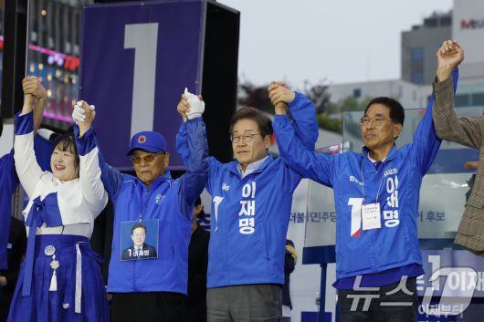 이재명 더불어민주당 대통령 후보가 수도권 표심잡기에 나선 20일 오후 경기 김포시 구래역 문화의 거리에서 유세를 펼치고 있다. 2025.5.20/뉴스1 ⓒ News1 안은나 기자 |