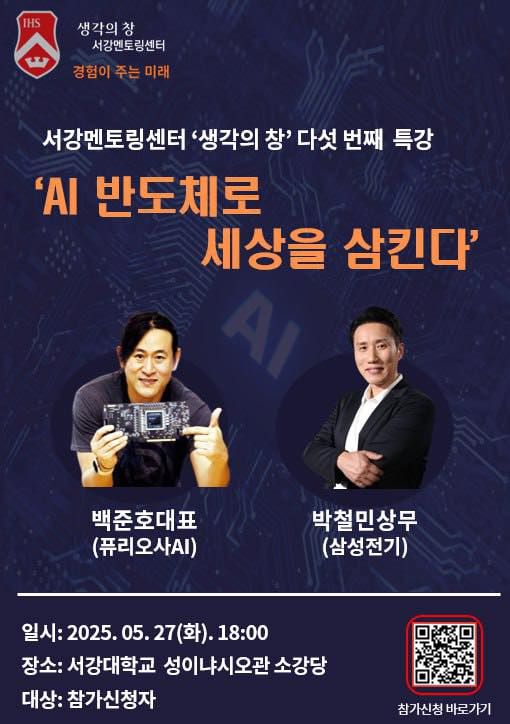 서강대학교 멘토링센터 '생각의창'이 메타의 1조원대 인수제안으로 화제가 됐던 AI반도체 스타트업 퓨리오사AI의 백준호 대표의 특강을 진행한다.