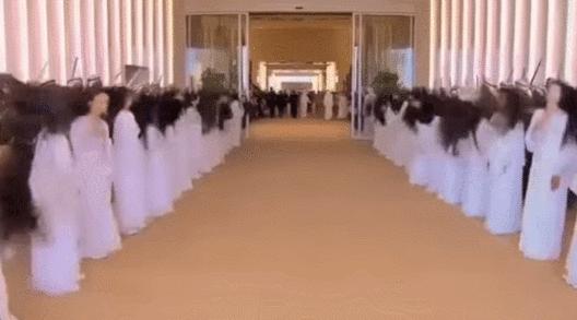 트럼프 대통령이 환대받는 장면은 사회관계망서비스(SNS)를 통해 확산됐다. "기괴하다" "주술 의식 같다"는 반응부터, 중동 여성들이 히잡을 착용하지 않고 머리카락을 드러낸 모습에 "생소하다"는 의견도 나왔다.
