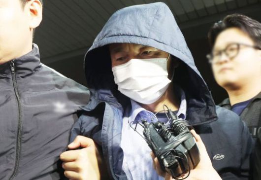 시흥 흉기사건의 용의자인 차철남이 19일 경찰에 긴급체포돼 경기 시흥경찰서로 압송되고 있다. 연합뉴스 |