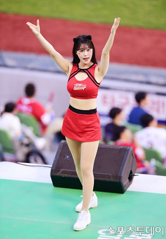 [스포츠투데이(잠실)= 권광일 기자] 2025 신한은행 SOL Bank KBO리그 SSG 랜더스와 두산 베어스의 경기가 20일 서울 잠실야구장에서 열렸다. 치어리더 김도아가 신나는 응원을 선보이고 있다. 2025.05.20. [스포츠투데이 권광일 기자 sports@stoo.com]
