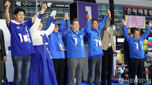[김포=뉴스핌] 정일구 기자 = 이재명 더불어민주당 대선 후보가 20일 오후 경기 김포시 구래역 문화의 거리에서 열린 김포 유세에서 시민들에게 인사를 하고 있다. 2025.05.20 mironj19@newspim.com |