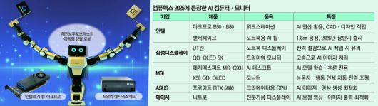 삼성디스플레이는 일찌감치 부스를 차리고 전력 절감을 극대화한 노트북용 유기발광다이오드(OLED)와 초고해상도 QD-OLED 모니터를 전면에 내세웠다. 에이수스는 콘텐츠 제작자를 위한 AI 최적화 그래픽처리장치(GPU)를, 에이서는 전문가용 AI 영상 보정에 최적화된 디스플레이 라인업을 선보였다. 이들 제품은 단순한 성능을 넘어 AI 활용 효율을 높이고 업무 흐름을 빠르게 해준다는 데 초점이 맞춰졌다는 공통점이 있다.