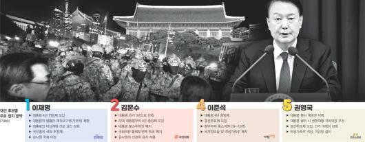 대통령의 법률안 재의요구권(거부권)을 제한하는 공약도 내놨다. 본인과 직계가족의 부정부패, 범죄 관련 법안에는 행사할 수 없게 하겠다는 것이다. 대통령의 비상계엄 선포권에 대해서는 “사전에 국회에 통보하고 승인을 얻도록 해야 한다”며 “긴급한 경우에도 24시간 내 국회 승인을 얻지 못하면 자동으로 효력을 상실하게 하겠다”고 말했다.