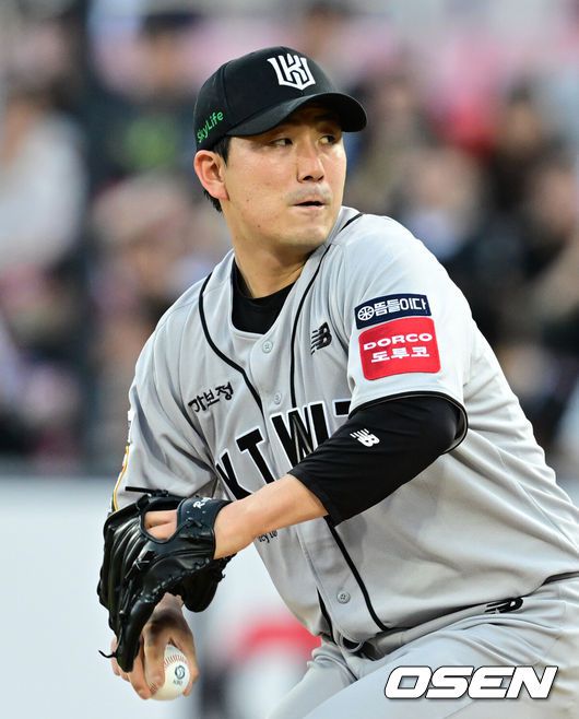 KT가 1회말부터 윤영철을 강하게 몰아붙였다. 1사 후 김민혁이 스트레이트 볼넷, 안현민이 우측 담장을 직격하는 2루타로 2, 3루 밥상을 차렸고, 3루주자 김민혁이 윤영철의 폭투를 틈 타 선취 득점을 올렸다. 이어 로하스가 볼넷으로 흐름을 이은 가운데 강백호가 달아나는 1타점 적시타를 때려냈다. 다만 김상수의 볼넷으로 이어진 2사 만루 찬스는 문상철이 3루수 땅볼에 그치며 무산됐다.