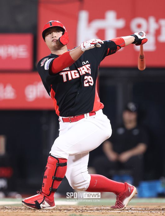 [스포티비뉴스=수원, 곽혜미 기자] 2025 신한 SOL Bank KBO리그 KT 위즈와 KIA 타이거즈의 경기가 20일 오후 수원 KT위즈파크에서 열렸다. 9회초 1사 1,2루 상황에서 KIA 변우혁이 삼진을 당하고 있다. <저작권자 ⓒ SPOTV NEWS. 무단전재 및 재배포 금지>