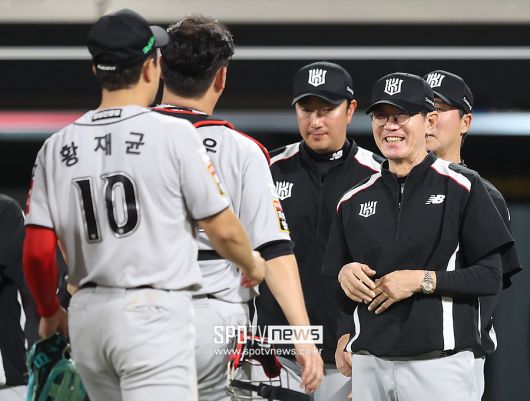 [스포티비뉴스=수원, 곽혜미 기자] 2025 신한 SOL Bank KBO리그 KT 위즈와 KIA 타이거즈의 경기가 20일 오후 수원 KT위즈파크에서 열렸다. 5-3로 승리한 KT 이강철 감독이 선수들을 바라보며 미소를 짓고 있다. <저작권자 ⓒ SPOTV NEWS. 무단전재 및 재배포 금지>