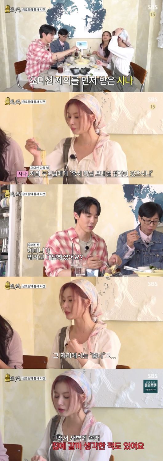 유연석은 사나에게 어떻게 데뷔하게 되었는지 물었고 사나는 “저는 캐스팅 당하고 오디션 제의를 받았다. 오디션 다음 날 저희 부모님에게 ‘혹시 따님 보낼 생각 있냐’ 했다. (부모님이) 그 자리에서는 좋다고 하고 집에 와서는 ‘안 가는 게 어떻겠냐’ 하셨다”라고 말했다.