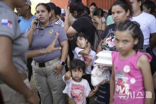 [팔렌케=AP/뉴시스] 2월 26일(현지 시간) 파나마 팔렌케의 한 보호소에서 이주민들이 파나마 이민 당국 관계자들로부터 음식을 받고 있다. 도널드 트럼프 미국 대통령의 이민 정책 강화로 미국행을 포기하고 멕시코 남부에서 되돌아온 이들은 본국으로 돌아갈 준비를 하고 있다. 2025.02.27. |