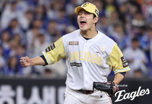 마무리 투수 김서현은 4-1로 쫓긴 8회 2사 1, 3루에서 등판해 4타자를 연속 삼진으로 잡는 위력을 뽐내며 시즌 14세이브를 올렸다.