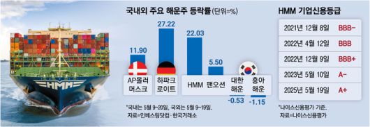 글로벌 대표 해운사들은 물론이고 국내 최대 해운사인 HMM은 주가 반등과 함께 신용등급 상향까지 이어졌다.