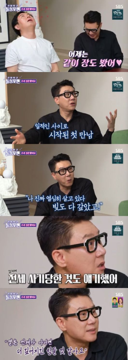 탁재훈은 "언제 결혼을 결심한거냐. 혼인신고를 하는게 쉬운 일이 아니지 않느냐"고 물었고, 이상민은 "모 아니면 도라는 마음으로 고백을 했고, 전세 사기를 당한 것까지 얘기를 다 했다"고 말했다.