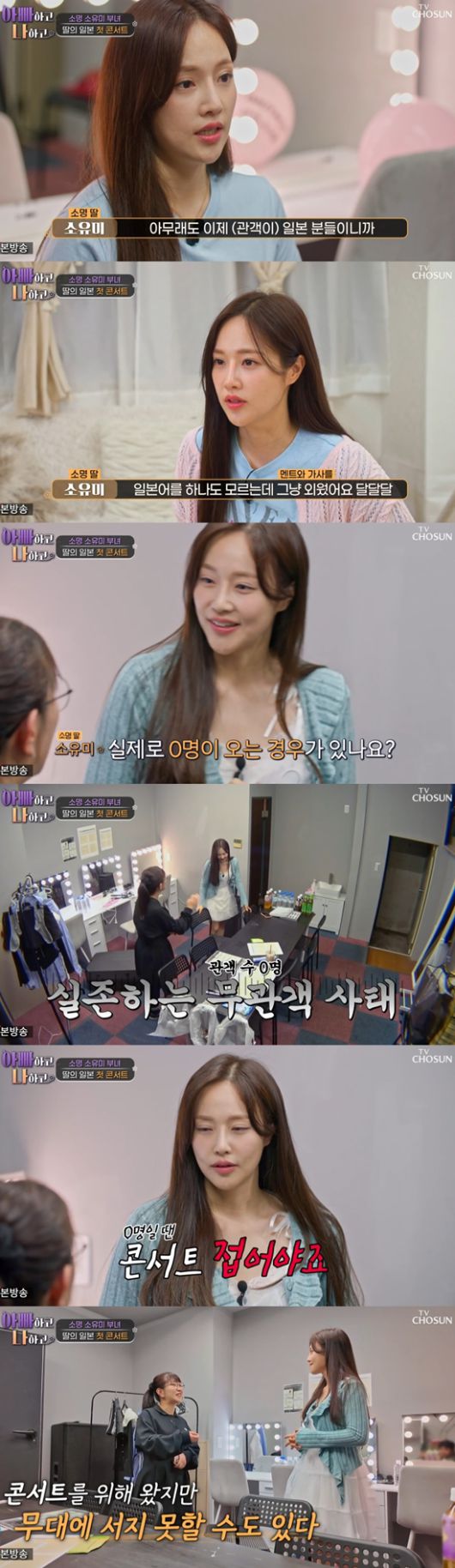 20일 방송된 TV CHOSUN '아빠하고 나하고'에는 38년 차 트로트 가수 소명 딸, 소유미가 일본 콘서트에 도전하는 모습이 담겼다.