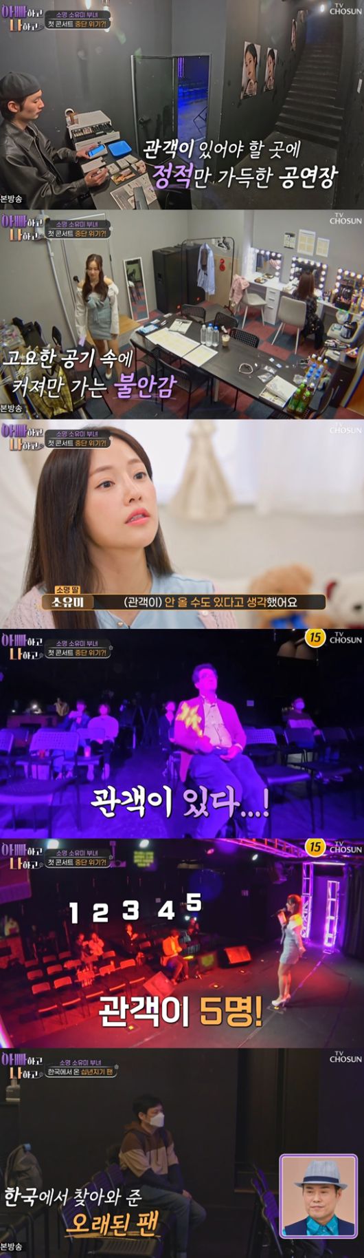 다행히 관객 다섯 명이 있었다. 하지만 소유미는 일본어로 시작하는 노래를 한국어로 시작했다. 소유미는 "당황했던 것 같다. 막상 (관객 수를) 눈으로 확인하니까 멘탈이 흔들려서, 일본어로 준비했던 부분이 날아갔다. (생각과) 현실은 달랐다"며 당황스러웠던 당시 상황을 설명했다.