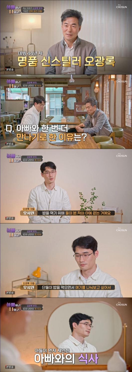 20일 오후 방송된 TV조선 ‘아빠하고 나하고’에는 오광록이 아들 오시원과 함께 식사하기 위해 만났다.