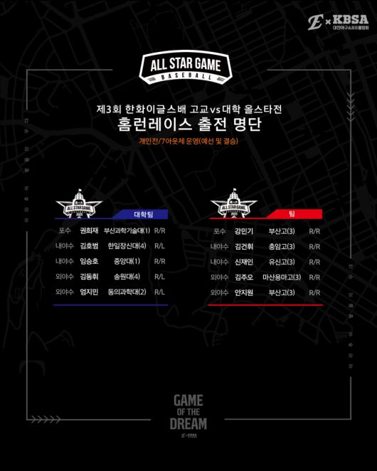 올해로 3회째를 맞는 한화이글스배 고교vs대학 올스타전은 한화이글스와 KBSA가 공동으로 주최하는 이벤트 경기로, 지난 2년 동안 아마추어 야구의 발전과 고교 · 대학 선수 간 교류에 크게 기여했다는 평가를 받고 있다.