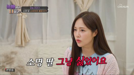 "'소명 딸'이라는 게 싫었다"고 고백한 소유미는 "아빠는 다정하고 자상한데 억압적이다. 꿈에 대한 기준이 높다. 아빠의 기준을 못 따라가니까 버겁다. 아빠라는 산이 너무 높다"고 털어놨다.
