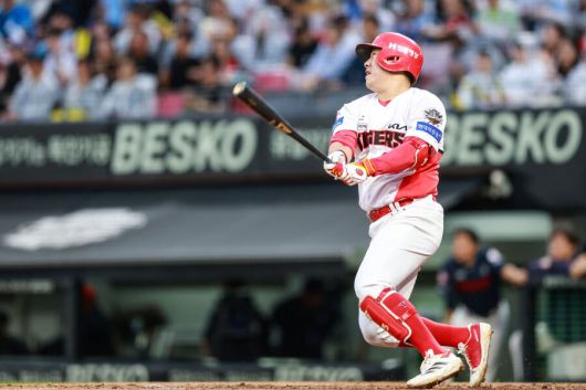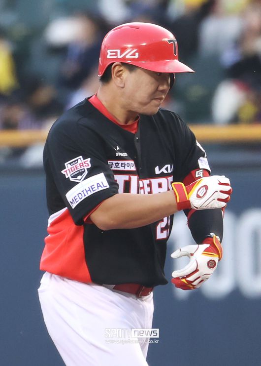 리그 최강 타선이라는 평가를 받았고, 실제 지난해 이 명제에 의문을 던지는 사람은 없었던 타선이다. 그러나 올해는 크고 작은 부상 속에 완전체 타선을 구성하기가 정말 힘들다. 시즌 개막하자마자 김도영이 햄스트링을 다쳤고, 박찬호(무릎)와 김선빈(종아리)이 차례로 1군에서 이탈했다. 박찬호 김선빈이 돌아오고, 김도영까지 돌아와 ‘이제 됐다’고 생각했던 시점 곧바로 나성범이 종아리를 다쳐 또 1군에서 빠졌다. 그 다음이 위즈덤이었다. 완전체 전력으로 경기를 한 게 1~2경기밖에 안 된다.