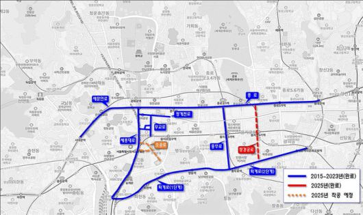 아울러 일방통행 도로로 운영되는 창경궁로의 차량 역주행 방지를 위해 도로 선형을 개선하고 노면 색깔 유도선을 설치했다.