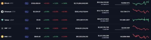21일 글로벌 가상자산 시황중계 사이트 코인마켓캡에 따르면 이날 오전 6시 30분 기준 비트코인 가격은 24시간 전 대비 1.22% 오른 10만 6499달러에 거래됐다. 일주일 전과 비교하면 1.9% 상승했다. 알트코인(비트코인 외 가상자산)의 대표격인 이더리움은 전일 대비 0.23% 하락한 2504달러를 기록했다.
